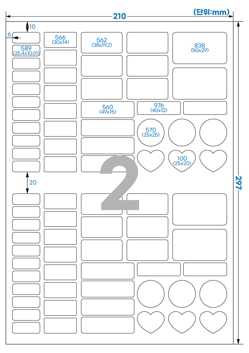 - 589 (25.4x10.01) - 11개 *2set - 566 (30x14) - 8개 *2set - 562 (38x19.2) - 6개 * 2set - 838 (50x29) - 2개 * 2set - 976 (원형 25x25) - 3개 * 2set - 100 (하트 25x20) - 3개 * 2set