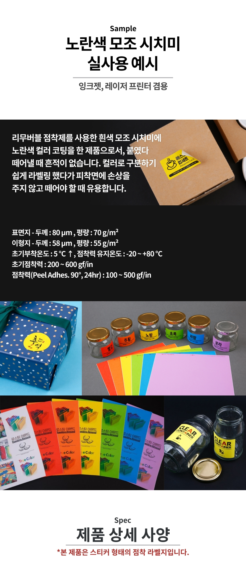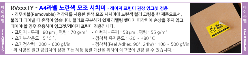 - 아이라벨 RVxxxTY 노란색 모조 시치미(리무버블) - 크기순 분류 A4 - 비트몰 아이라벨
