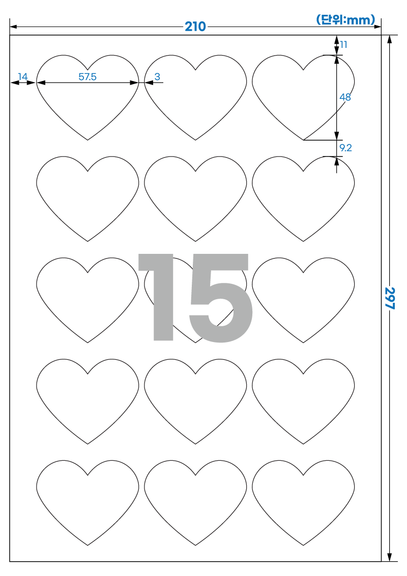 아이라벨 SL101 (하트 15칸) 흰색 모조 레이저 프린터 권장 [100매/권당] 57.5x48mm 스티커 A4 라벨지 - iLabels