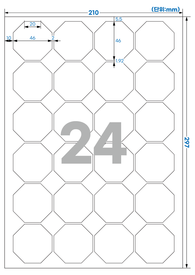 | 장당 라벨 수 | 24 라벨/장 /A4 |