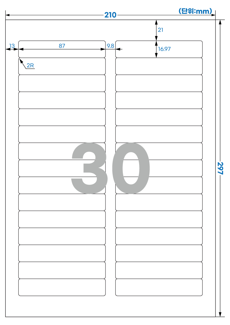 | 장당 라벨 수 | 30 라벨/장 /A4 |