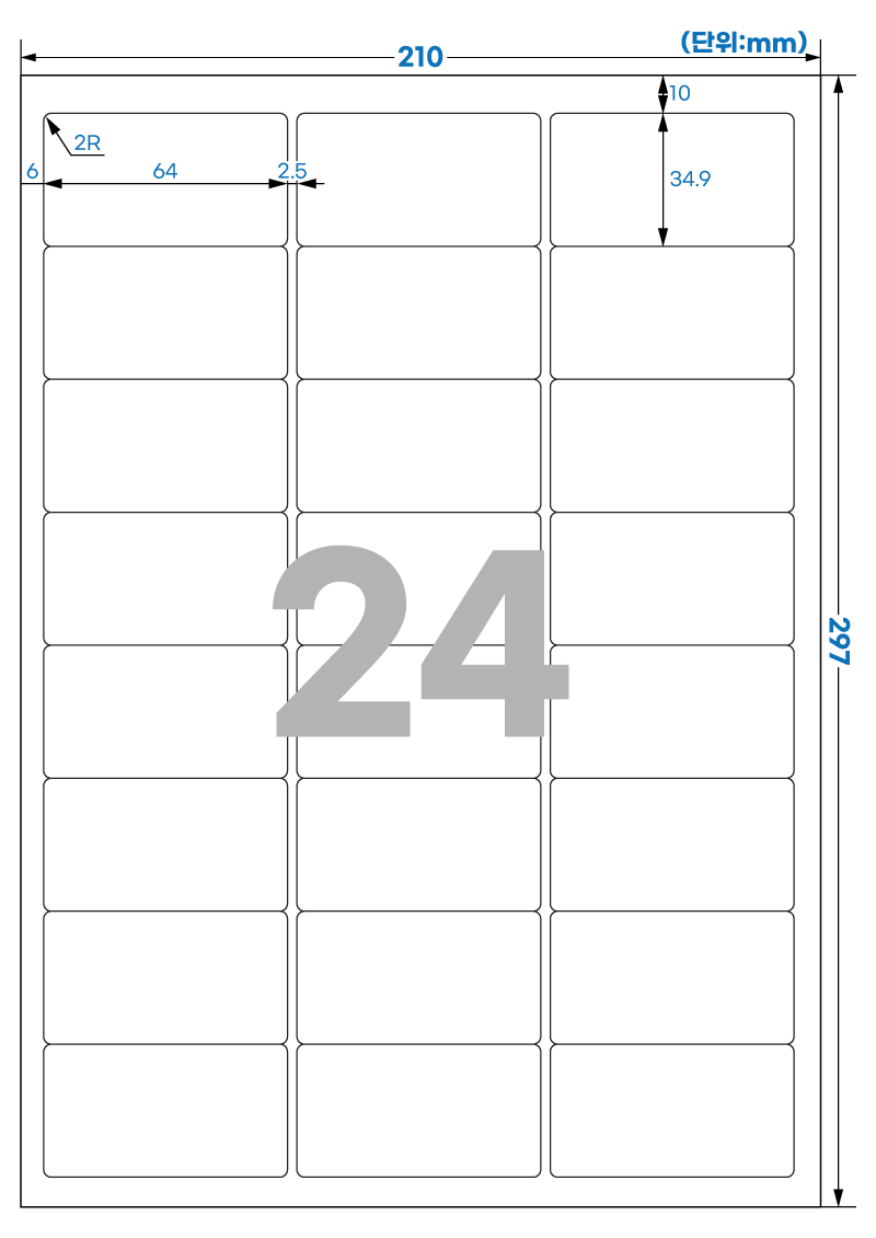 | 장당 라벨 수 | 24 라벨/장 /A4 |