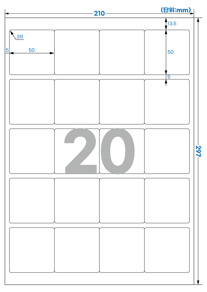 | 장당 라벨 수 | 20 라벨/장 /A4 |