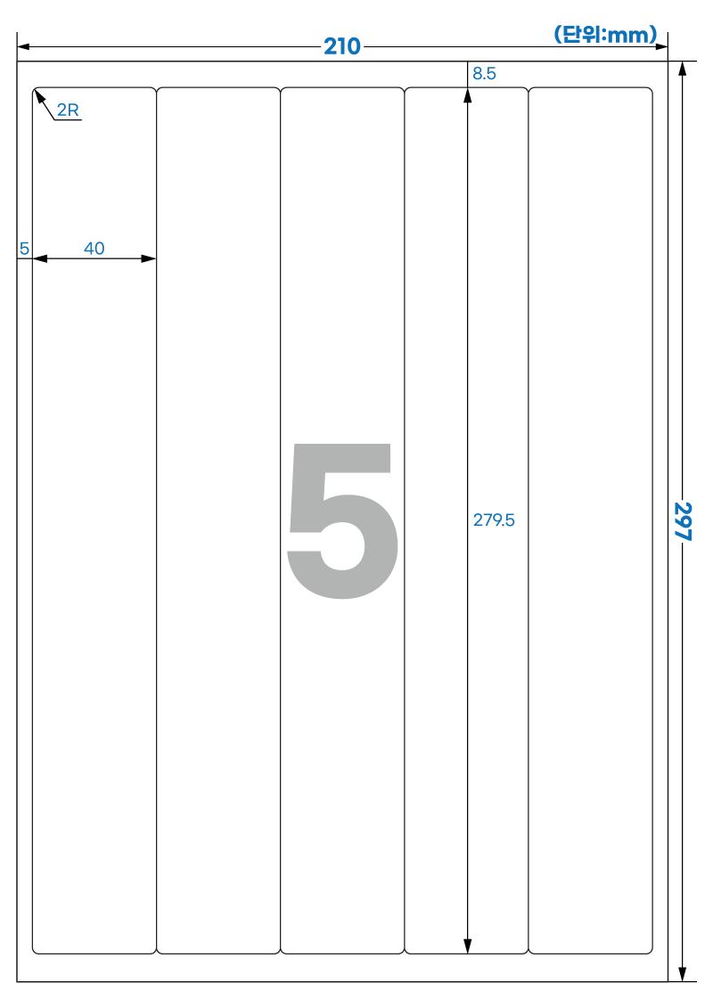| 장당 라벨 수 | 5 라벨/장 /A4 |