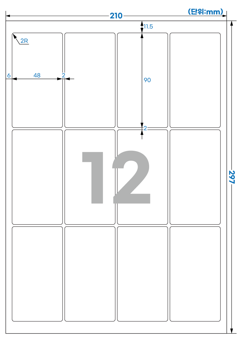 | 장당 라벨 수 | 12 라벨/장 /A4 |