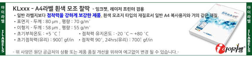 - 아이라벨 KLxxx 흰색모조 찰딱라벨(점착력 강화) - 모델번호별 분류 A4 - LbM 라벨몰.kr