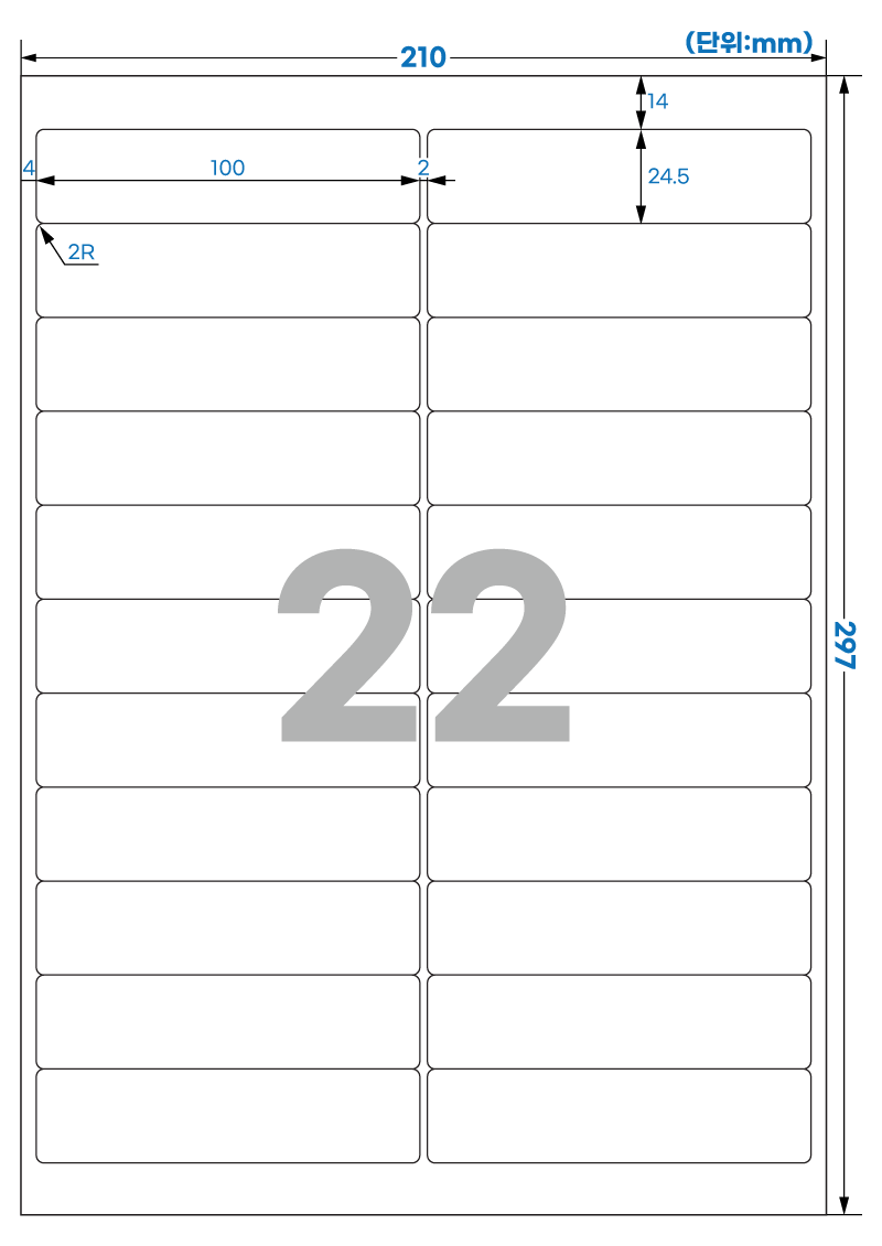 비트정보 | 아이라벨 아이라벨 CL522 (22칸 흰색 모조 레이저 프린터 권장 [100매/권당] 100 x 24.5mm 스티커 A4 라벨지 - iLabels - www.아이라벨.com - www.비트몰.kr | 비트정보(이사팔)