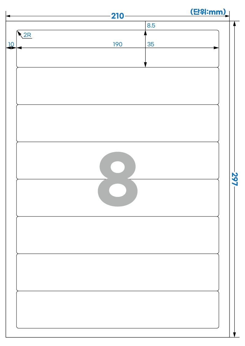 아이라벨 CL618 (8칸) 흰색 모조 레이저 프린터 권장 [100매/권당] 190x35mm 스티커 A4 라벨지 - iLabels