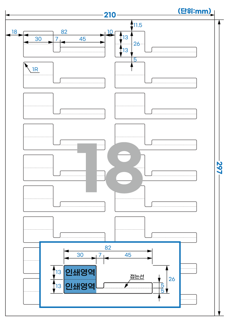 아이라벨 18칸(2x9) 삐치미형