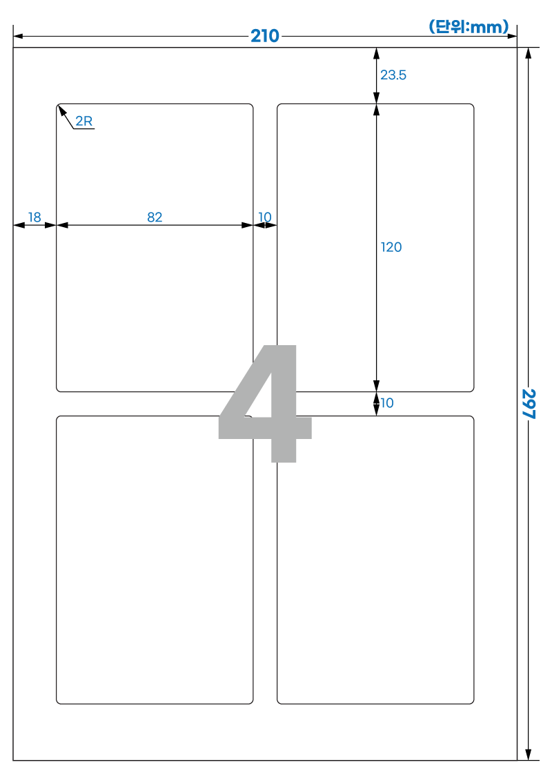아이라벨 CL822 (4칸) 흰색 모조 레이저 프린터 권장 [100매/권당] 82x120 mm 스티커 A4 라벨지 - iLabels