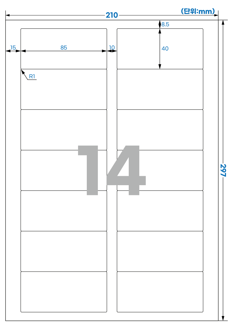 ![]() ※ 라벨 칸 수가 같아도 라벨 크기나 모양이 다를 수 있으므로 선택시 주의하시기 바랍니다. - 아이라벨 CLxxx 흰색모조 - 칸수별 분류 (0~5칸, A4라벨) - LbM 라벨몰.kr 크기순 칸수순 [0~5칸] [6~10칸] [11~20칸] [21~30칸] [32~50칸] [54~70칸] [76~96칸] [105~560칸] 모델번호순 - 아이라벨 CL9xx 흰색모조지 - 모델번호별 분류 A4 - LbM 라벨몰.kr
