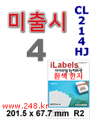 196x125 mm - 4칸 라벨, - 흰색 한지라벨 - 100매 / A4