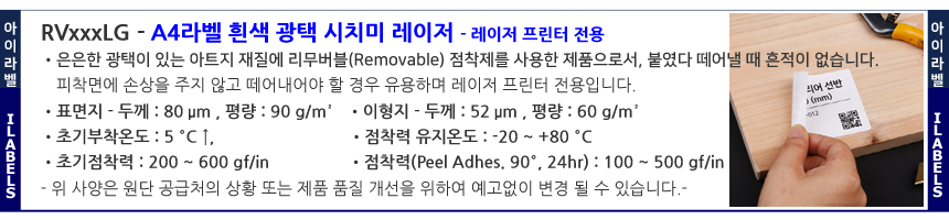 - 아이라벨 RVxxxLG 흰색광택 시치미(리무버블) 레이저전용 - 모델번호별 분류 - 비트몰 아이라벨